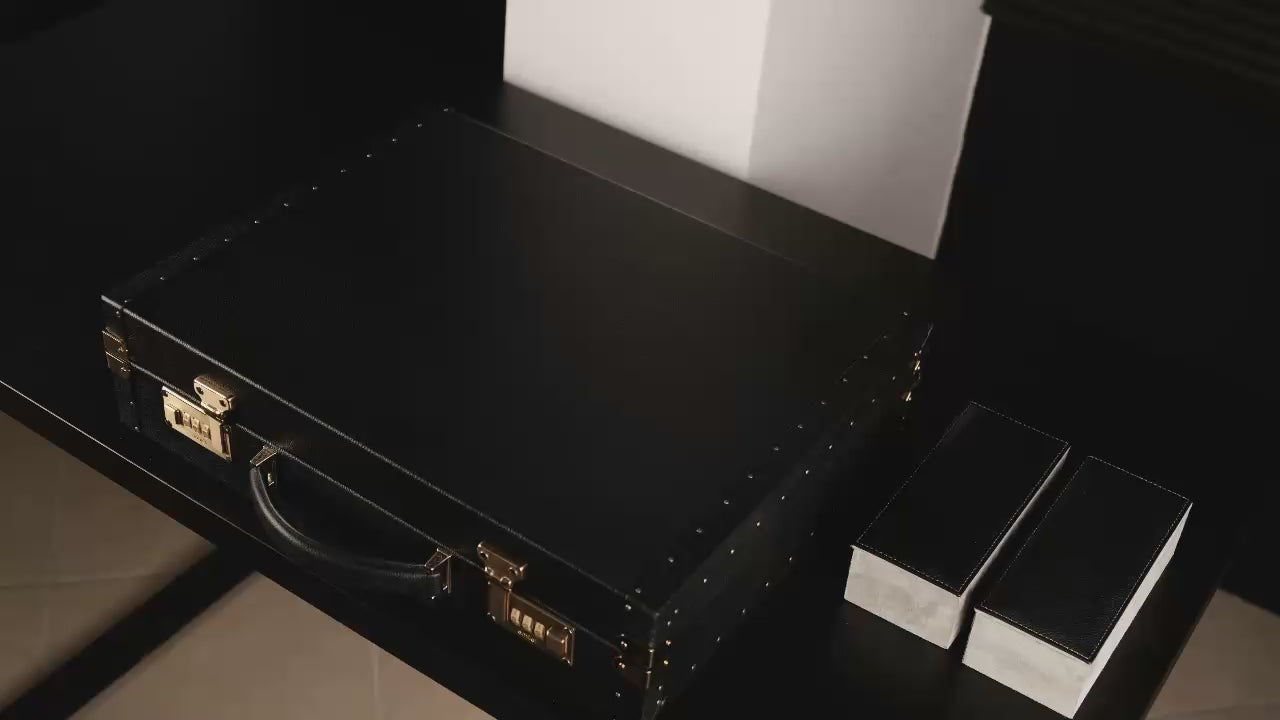 Fitted with 24k gold-plated hardware and a Swiss-engineered Amiet combination lock, the OFL Watch Case combines aesthetic refinement with trusted security.